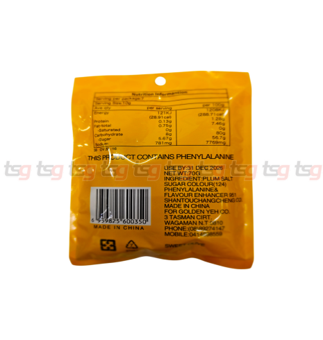 – Product information: Golden Yeh Dried Olive 70g may be small in size, but it packs a punch — a perfect balance of sweet and salty with a subtle tang that keeps you coming back for more. Ideal for afternoon tea, moments when you need to refresh your palate, or simply when you want to treat yourself to something uniquely delicious.