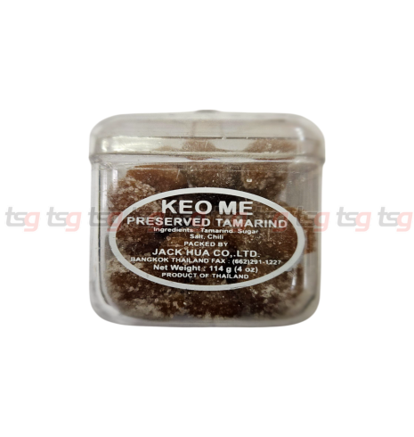 – Product information: Keo Me Preserved Tamarind 114g – A chewy Thai tamarind candy with a perfect blend of sweet, sour, and spicy flavors. Made from real tamarind, sugar, salt, and chili, it’s a bold snack packed in a convenient jar.