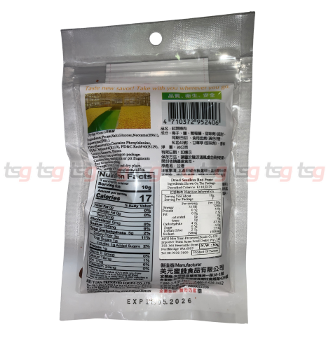 – Product information: Meiyuan Dried Seedless Red Prune 30g – Tender, naturally sweet seedless prunes with no preservatives. Perfectly sized for clean snacking or adding a burst of natural flavour to salads, breakfasts, and desserts.