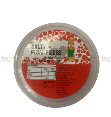 – Product information: Pink Lady Salty Plum Pieces 80g – Small square-cut salted plums with a perfectly balanced sweet, sour, and salty flavor. Rich in traditional taste, easy to enjoy, incredibly addictive, and convenient to carry anywhere.