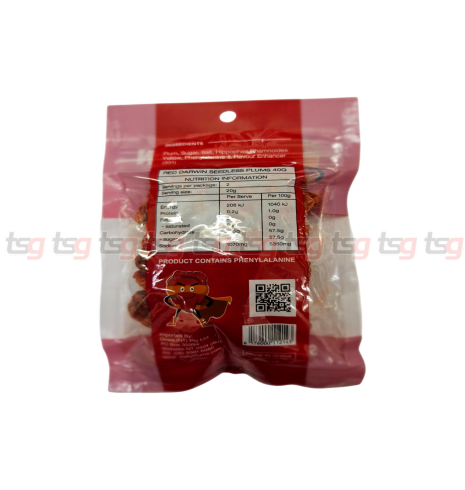 – Product information: Red Darwin Seedless Salty Plum 40g – A perfect combination of sweet, tangy, and salty flavors in a convenient, seedless plum snack. Soft, chewy, and bursting with natural taste, this snack not only satisfies your cravings but also helps with digestion and refreshing your palate.