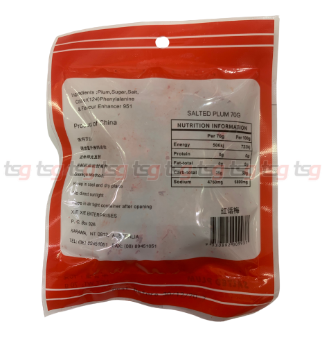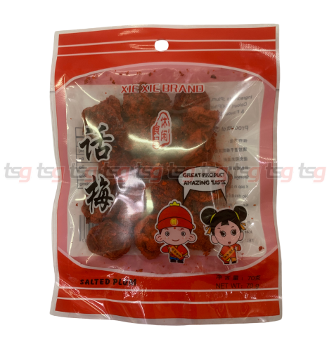 – Product information: Xie Xie Salted Plum 70g – Bold red salted plums with a perfect balance of tangy, salty, and a hint of sweetness. Compact and convenient, this nostalgic snack hits the spot whenever you need a flavorful break.